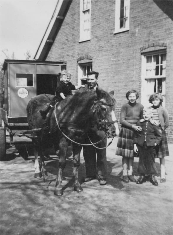 Op deze foto uit 1957zit Roel Gritter op het paard Nellie, naast hem zijn oom Evert Bos,